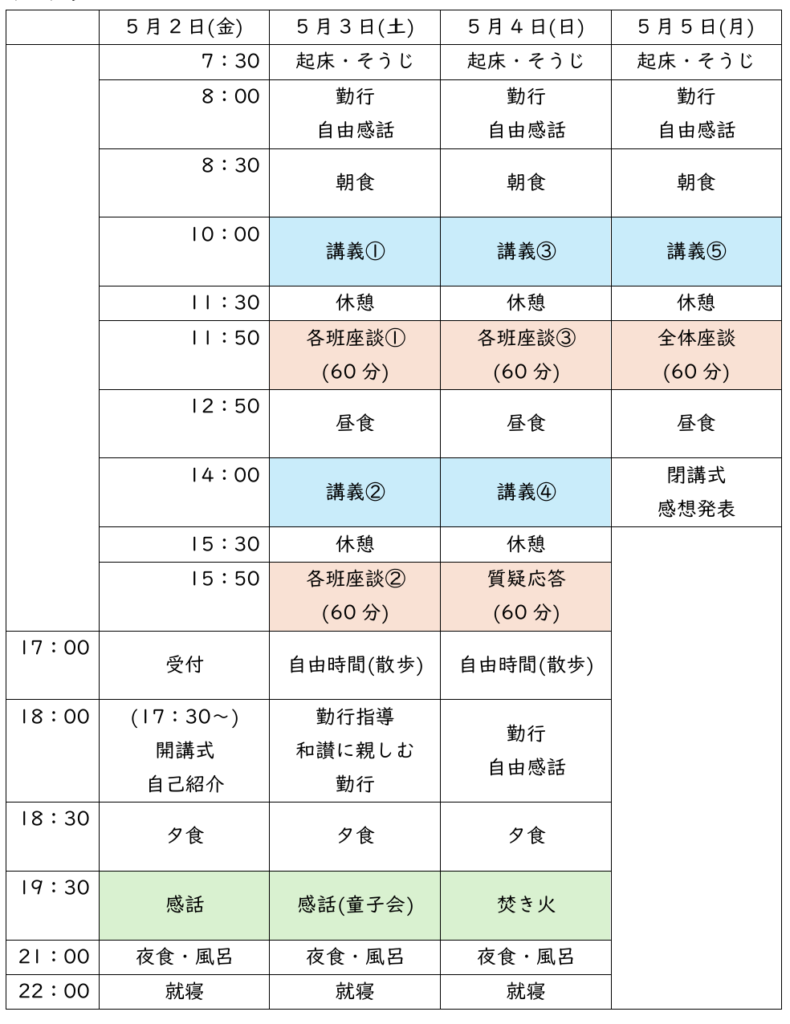 1.日 時: 2025年5月2日(金)夕方~5日(月) 【2日(金)の講義はありません】